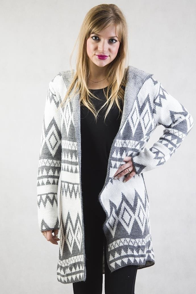 SZARA NARZUTA SWETERKOWA WE WZORKI Z KAPTUREM