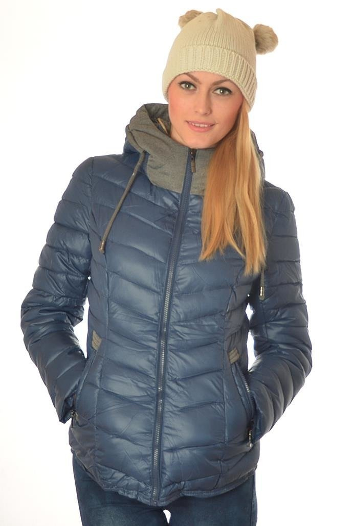 Granatowa, ortalionowa, pikowana kurtka z kapturem