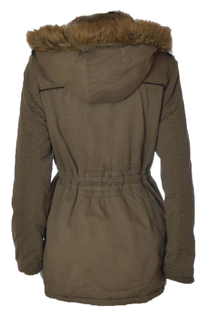 Bardzo ciepła, dłuższa kurtka z kapturem wykończonym futerkiem. Zapinana na zamek , oraz guziki, wiązana w talii, cztery kieszenie z przodu ze wstawkami skóry ekologicznej.