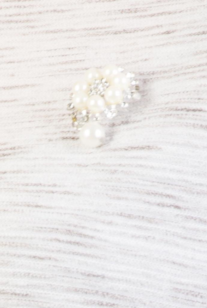 Beżowa tunika z dwoma kieszeniami oraz broszką.