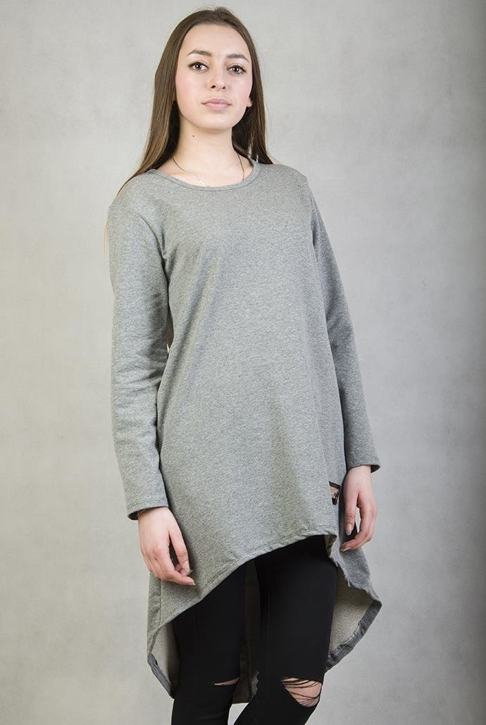 Ciemno-szara, asymetryczna tunika z blaszką "FU SHI SPORT"