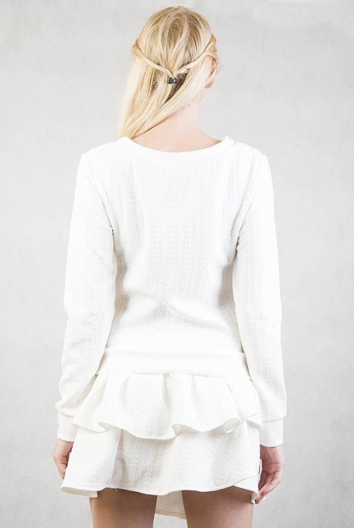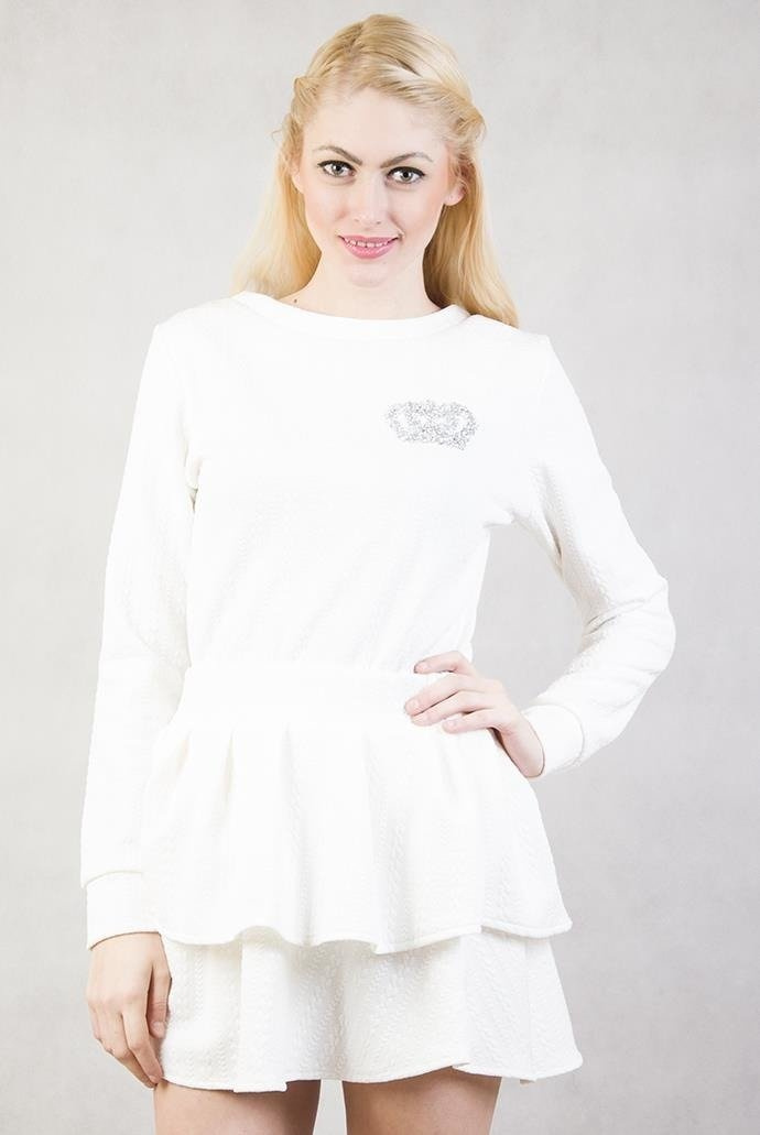Biała bluzka z koroną oraz ściągaczem na dole.