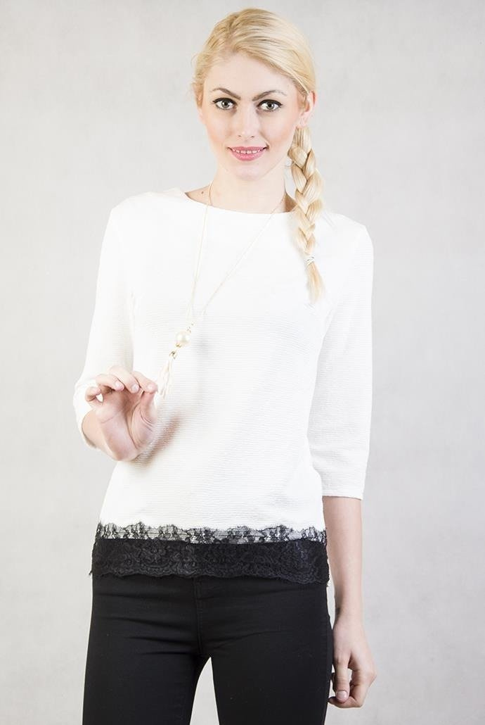 Bluzka z koronką, wisiorkiem i rękawem 3/4