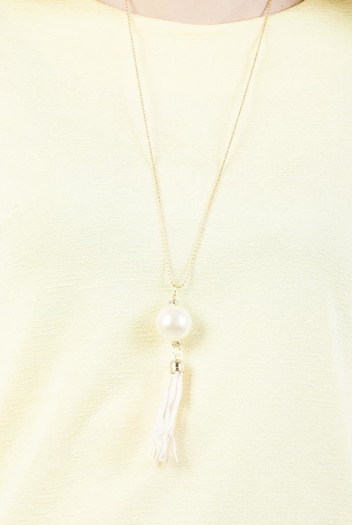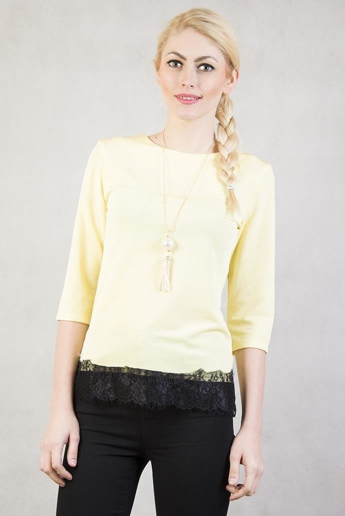 Żółta bluzka z koronką i wisiorkiem