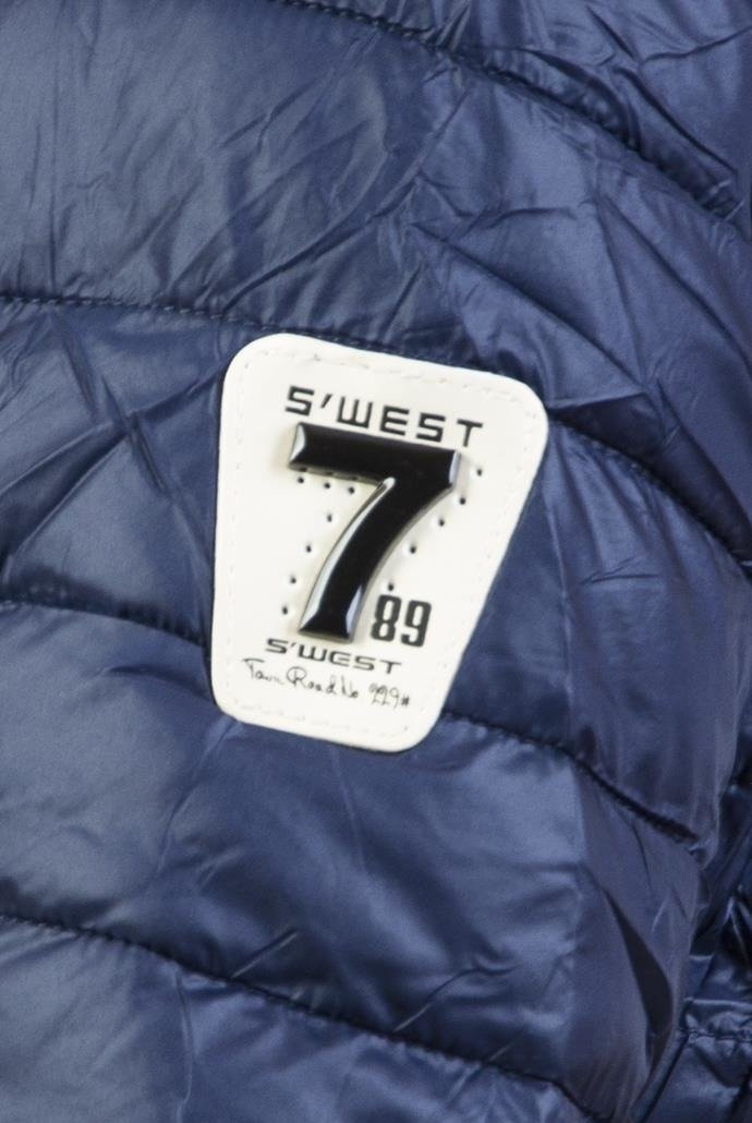 Granatowa kurtka ortalionowa zapinana na zamek, z kapturem. Na dole ściągana sznureczkami. Na rękawie naszyta naszywka "7"