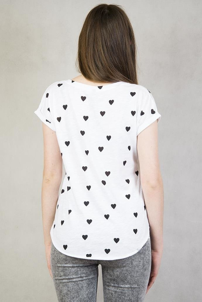 Biała bluzka w czarne serduszka z napisem "Dreamer deserve your dream"