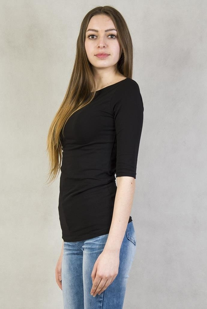 Czarna bluzka z rękawem 3/4 i dekoltem w "łódkę"