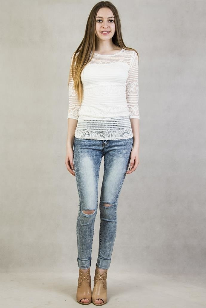 Biała bluzka z wkładkami w dekolcie, obszyta koronką