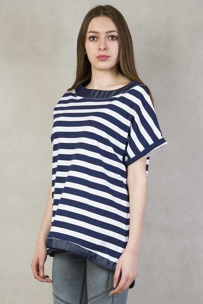 Bluzka w biało-granatowe paski na dole wiązana
