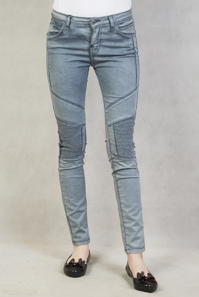 Niebieskie spodnie z przeszyciami na kolanach