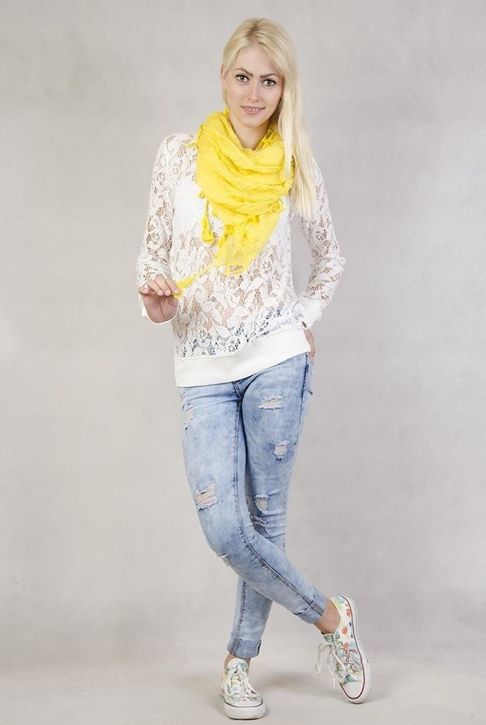 Żółty szal z frędzelkami