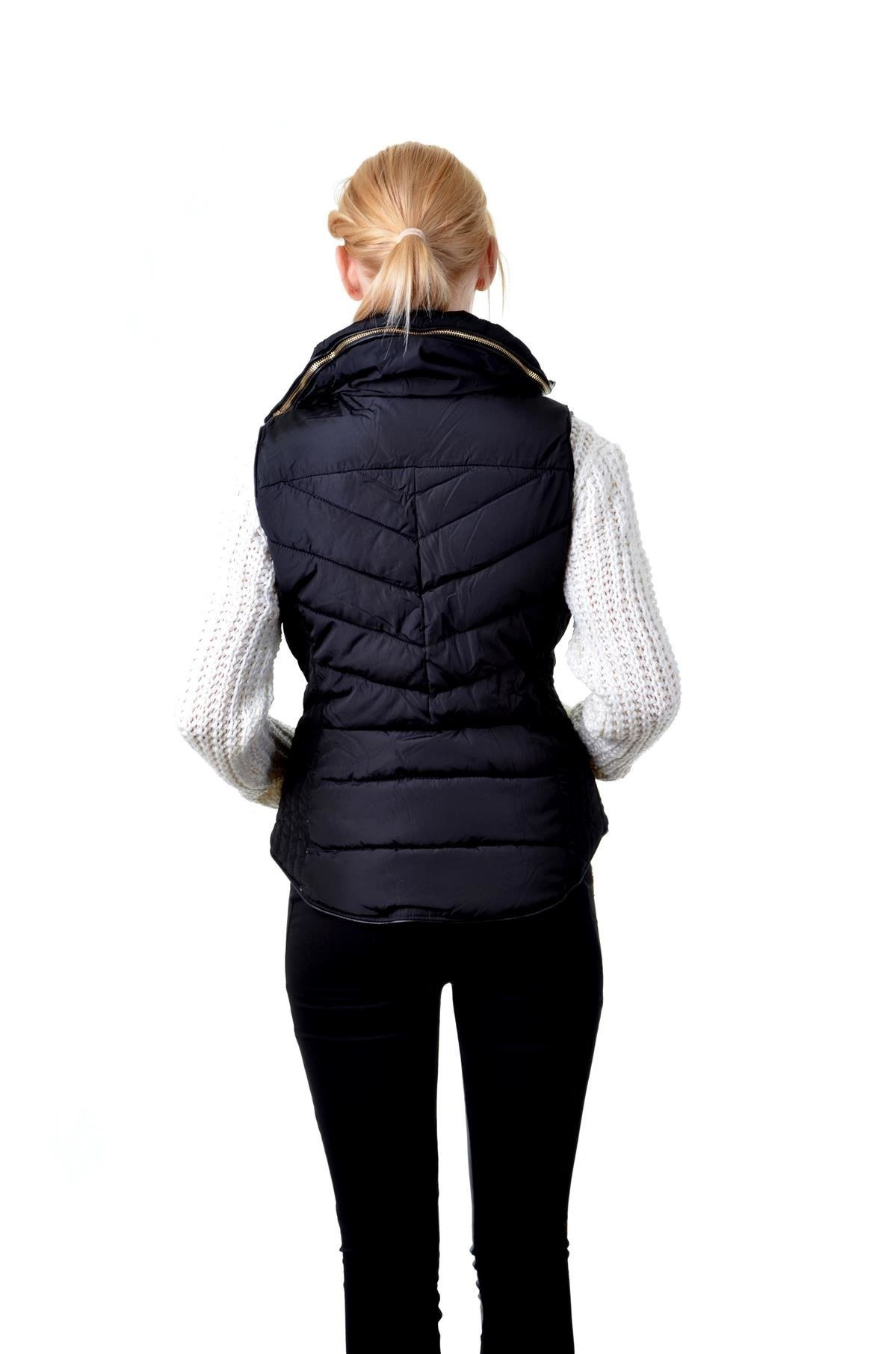 Pikowana, ocieplana od środka kamizelka zapinana na zamek, oraz zatrzaski. Z przodu dwie kieszenie,zapinane na zamek. Całość ze stójką. Idealna na chłodniejsze dni.