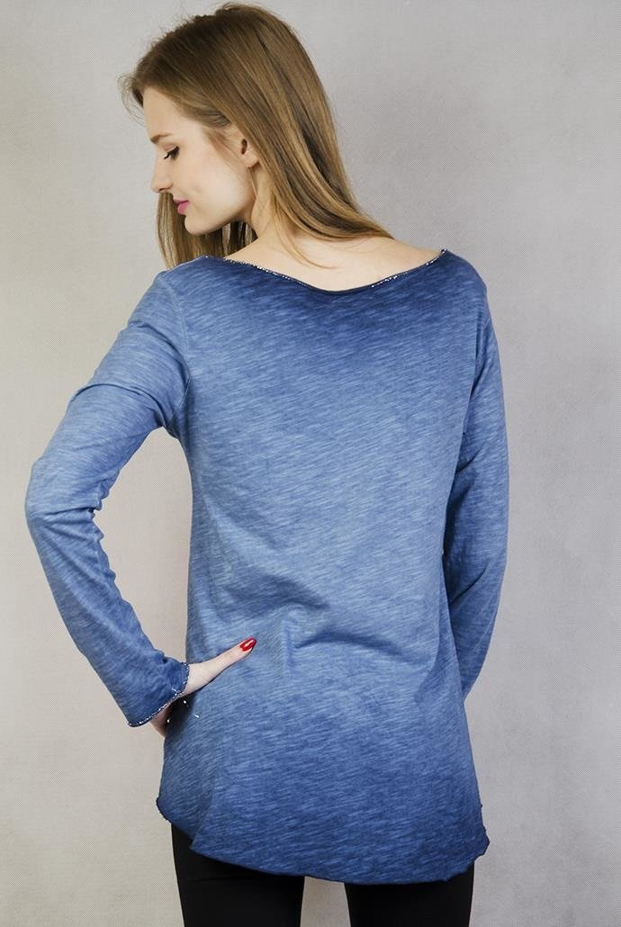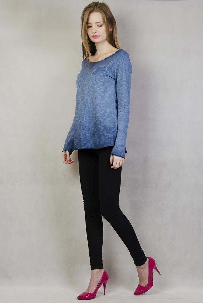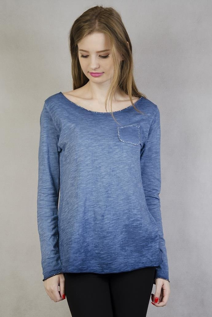 Niebieska bluzka z kieszonką i srebrną nitką przy dekolcie i kieszonce