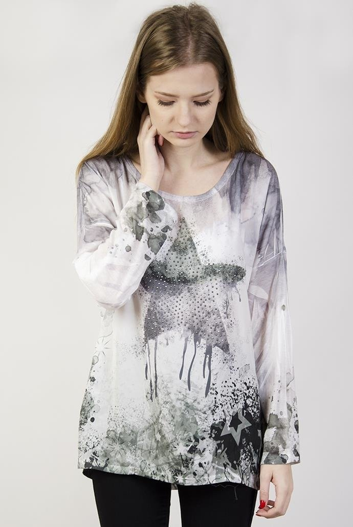 Biało-zielona bluzka z gwiazdą, z podwijanym rękawem