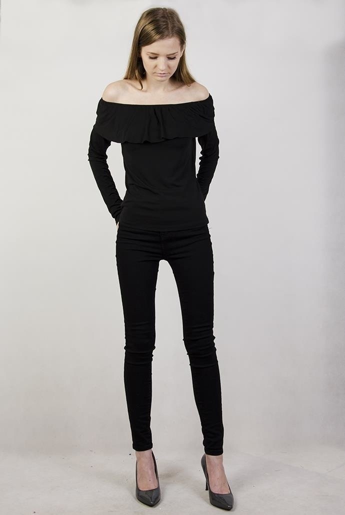 Czarna bluzka z hiszpańskim dekoltem, z długim rękawem