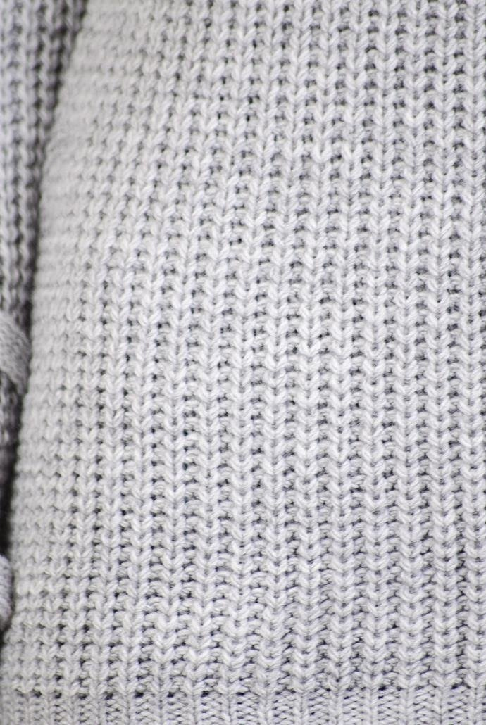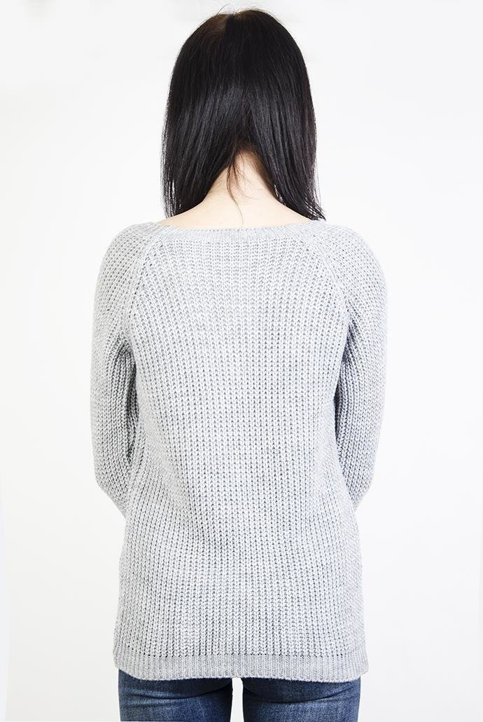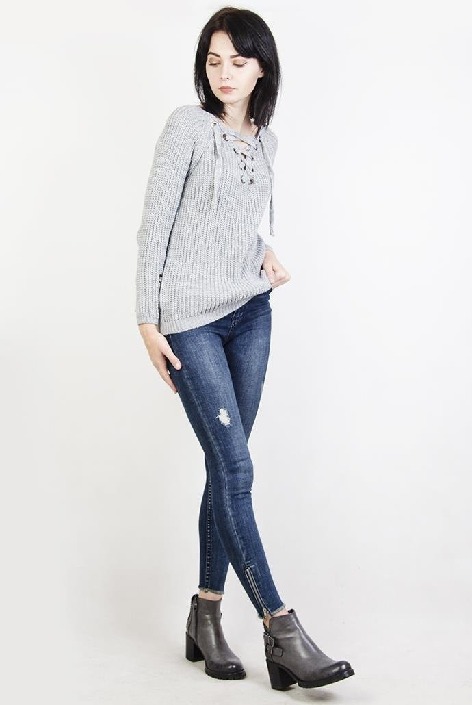 Szary sweter z wiązaniem w dekolcie