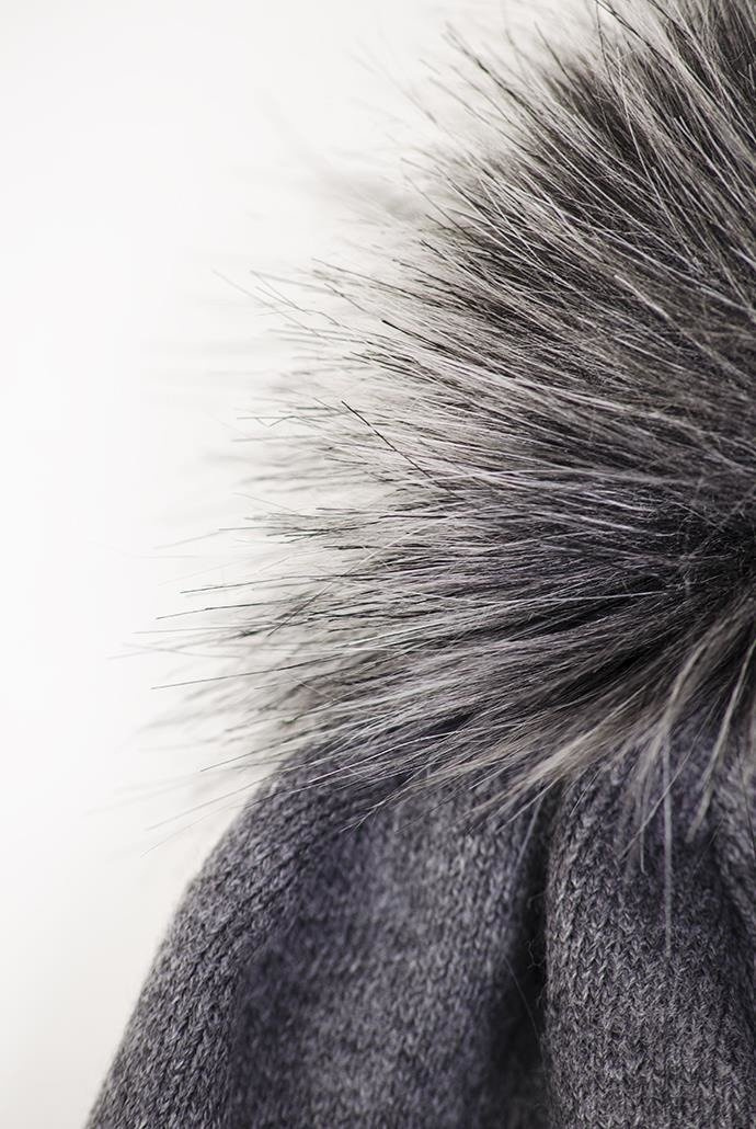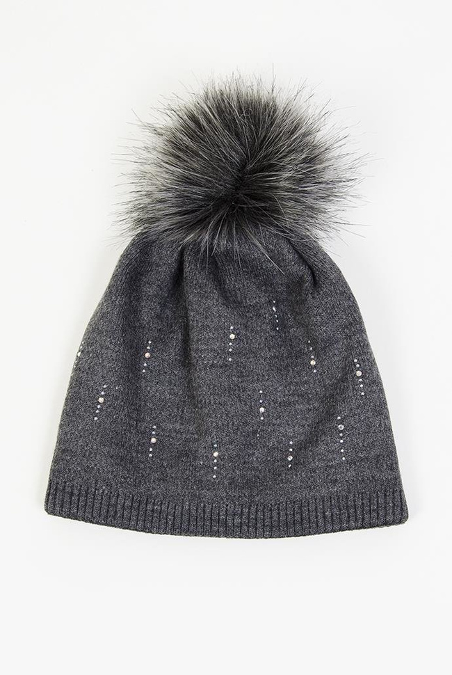 Ciemnoszara czapka z cyrkoniami i pomponem