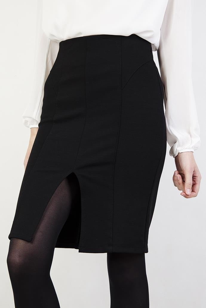 Czarna spódniczka ołówkowa z przeszyciami i wycięciem