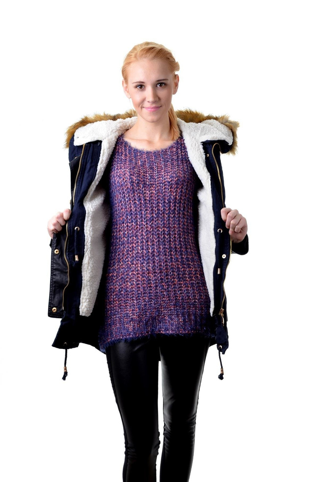 Dłuższa ciepła kurtka 2w1, z kapturem wykończonym futerkiem oraz ciepłym podszyciem, z możliwością jego odpięcia . Kurtka idealna na zimę, jak i na jesień po odpięciu podszycia .