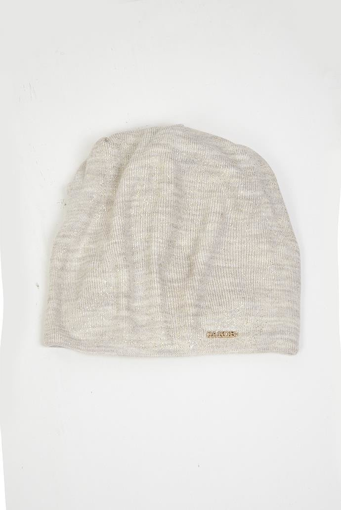 Beżowa czapka ze złotymi drobinkami i naszywką "JAKOB".