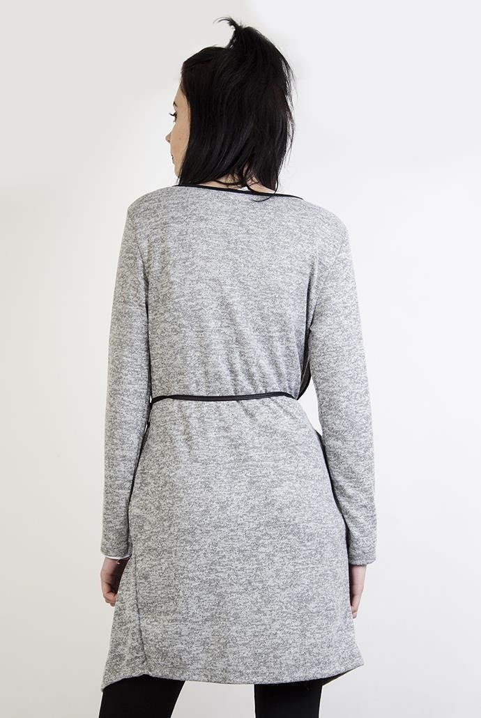 Jasnoszara narzuta wiązana w pasie. Posiada kieszenie.