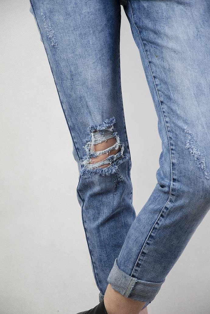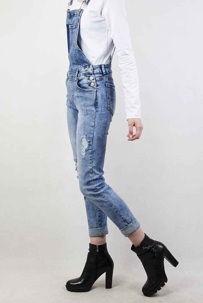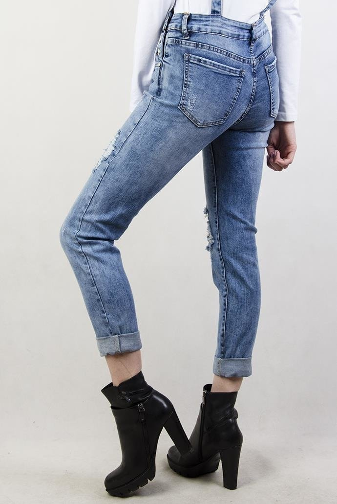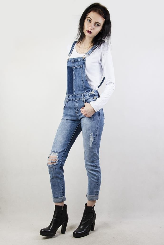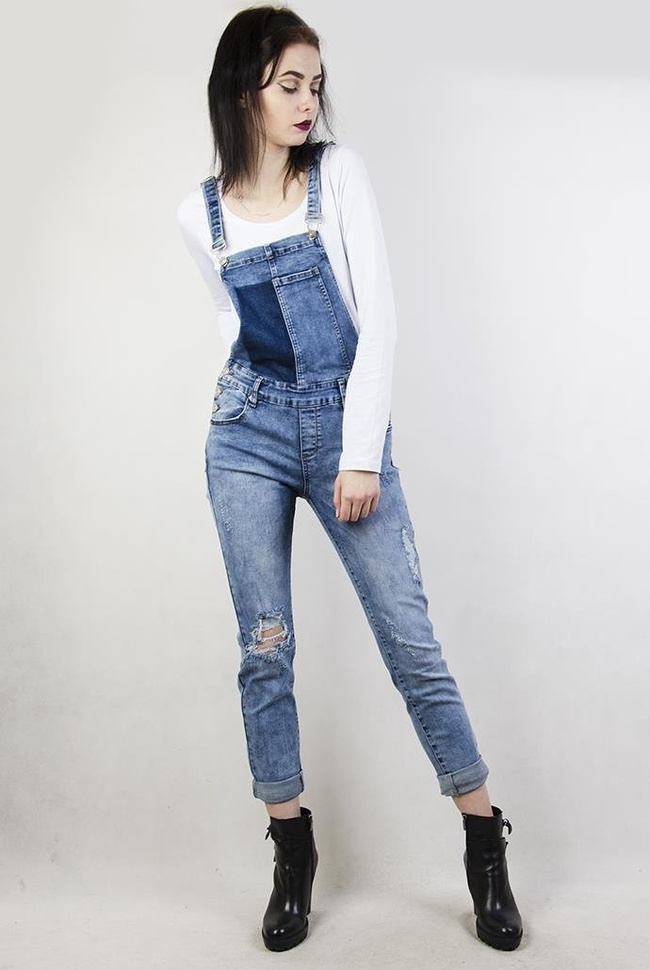 Spodnie jeansowe ogrodniczki, z przetarciami