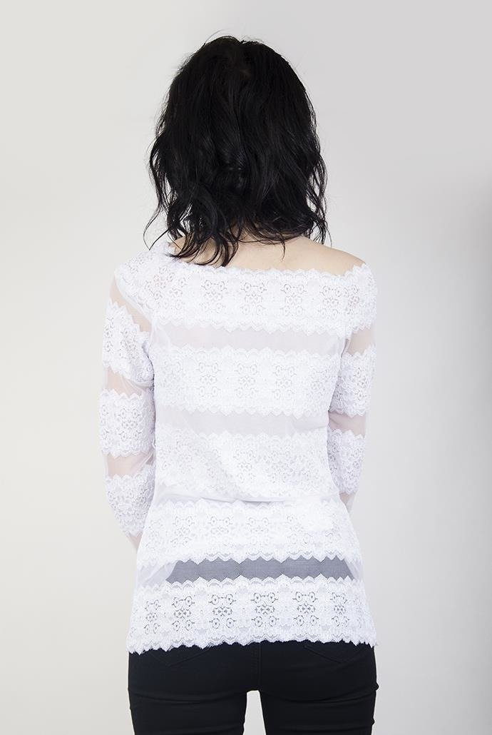 Biała bluzka z długim rękawem, ze wstawkami z koronki.