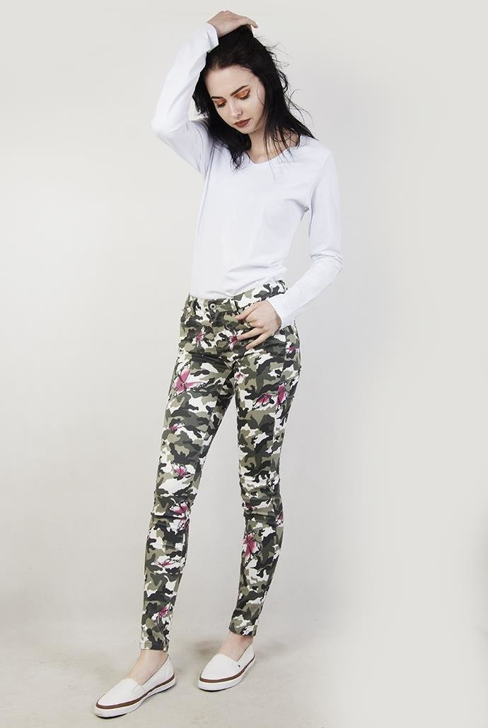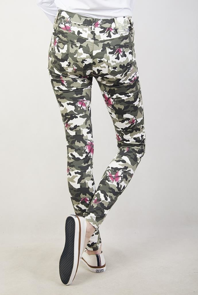 Spodnie moro z motylami.