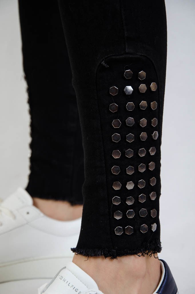 Czarne spodnie jeansowe z ćwiekami przy nogawce