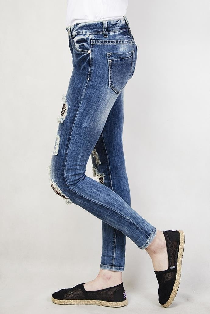 Spodnie jeansowe skinny, z wstawkami kabaretkami.