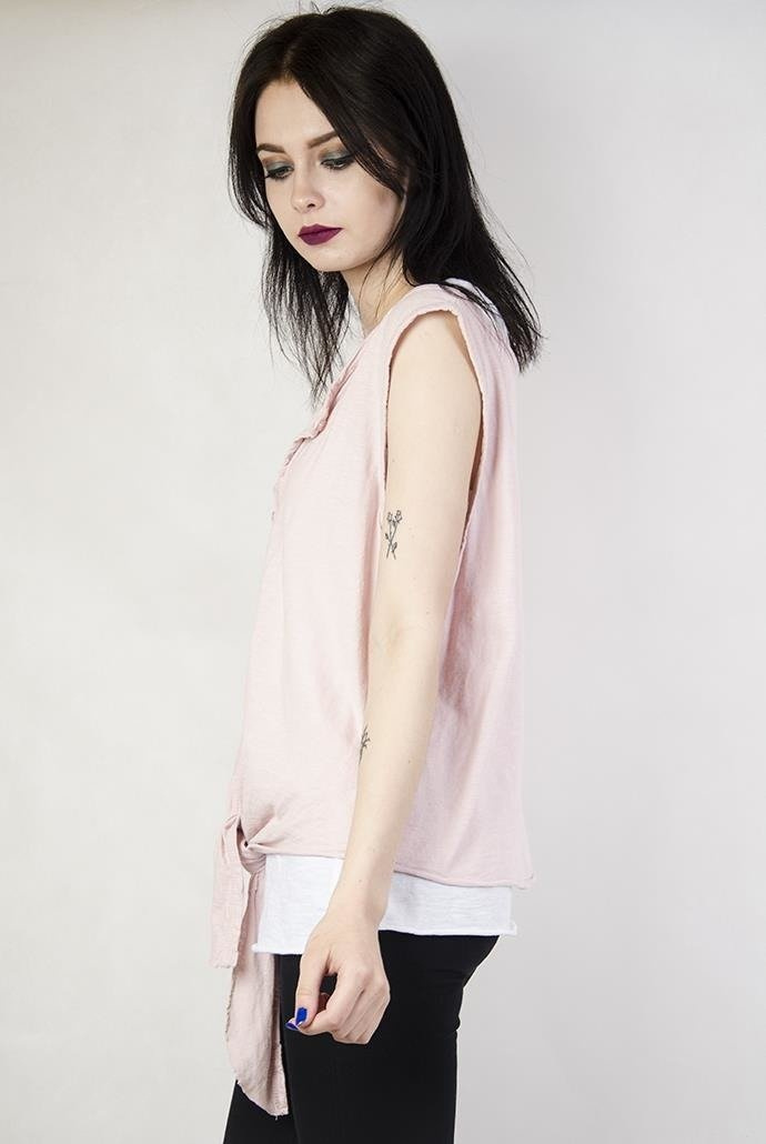 Jasnoróżowa bluzka zapinana na guziki, z bokserką