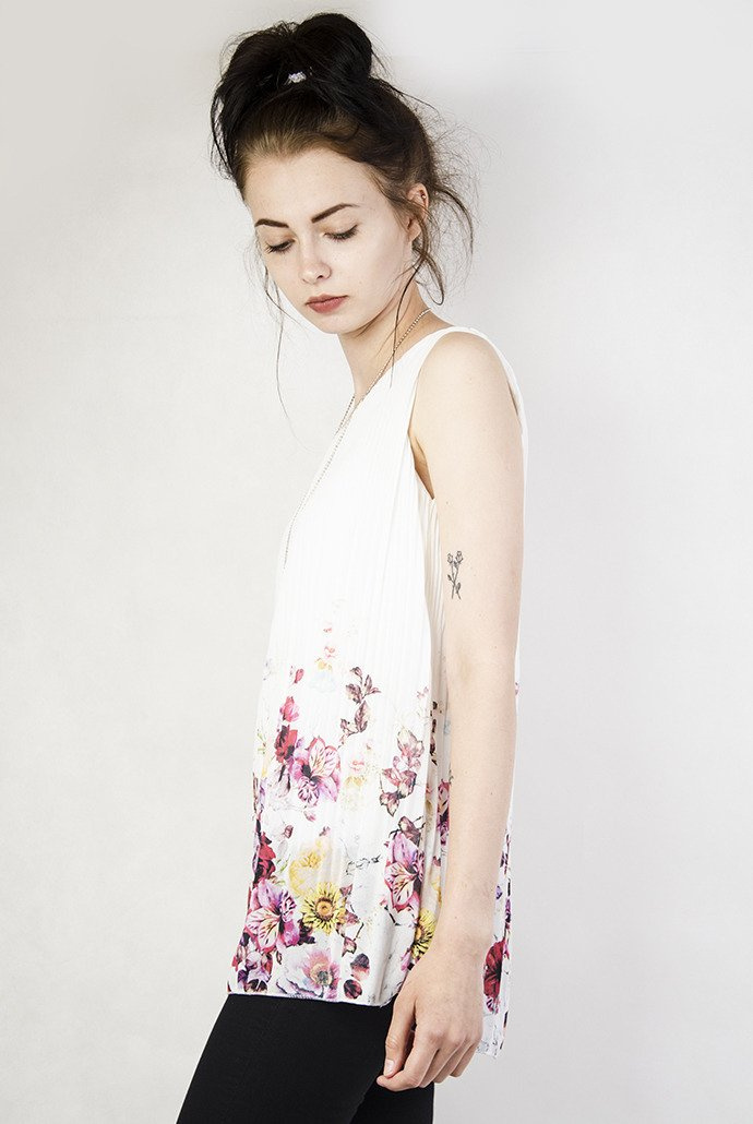 Biała, plisowana bluzka we wzór kwiatowy