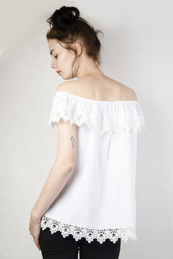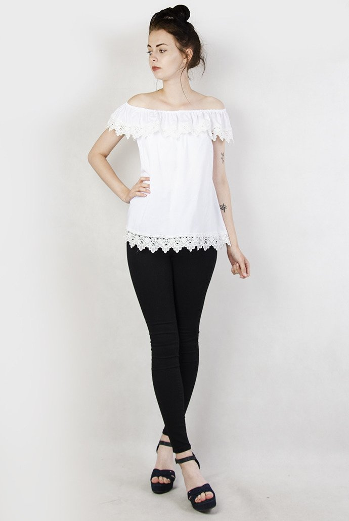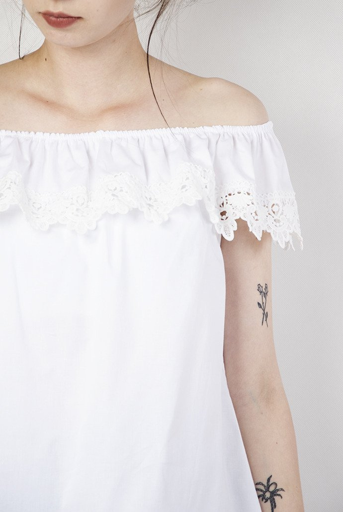 Biała bluzka koszulowa z hiszpańskim dekoltem