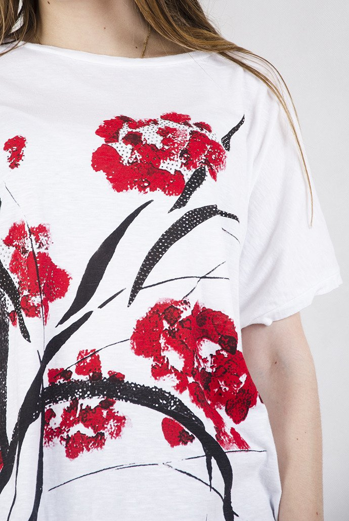 Biała bluzka z czerwonymi akcentami.