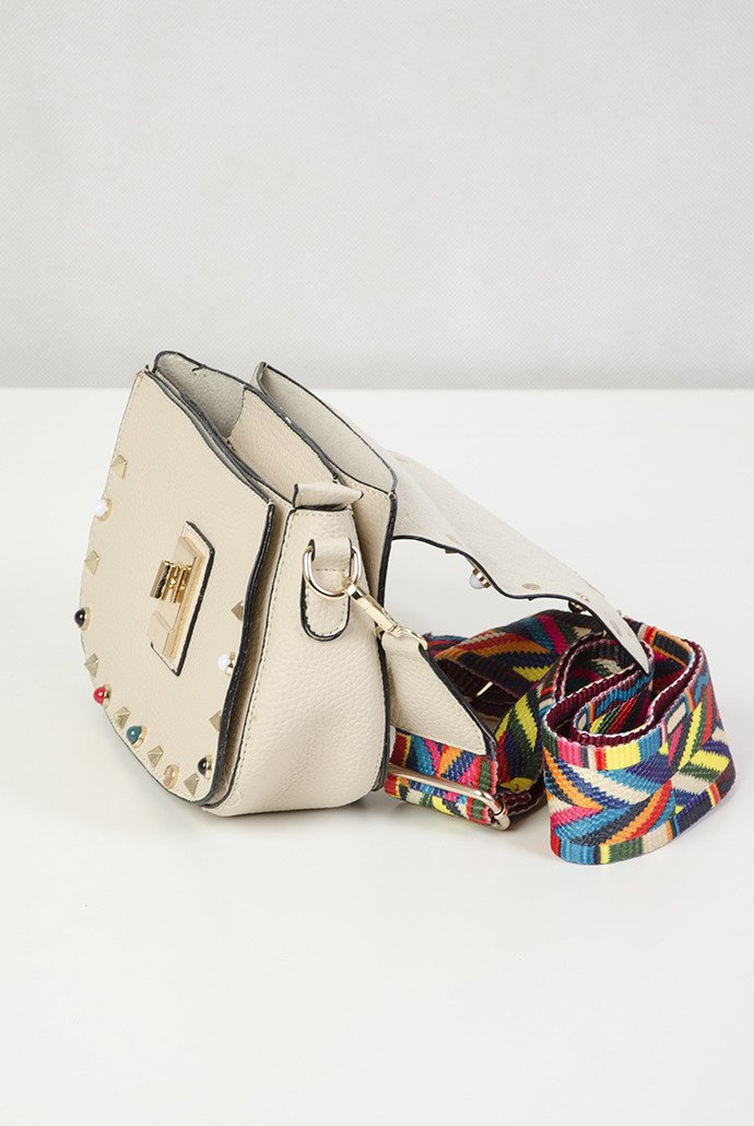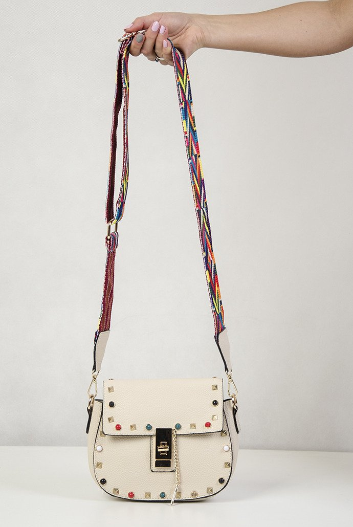 Beżowa torebka z kolorowym paskiem