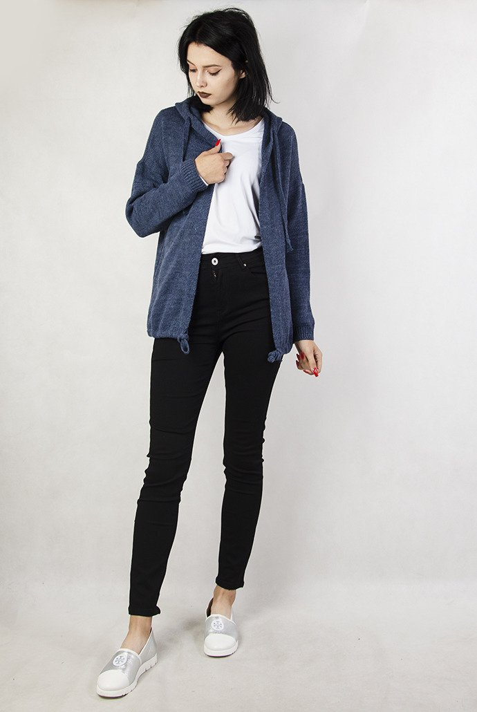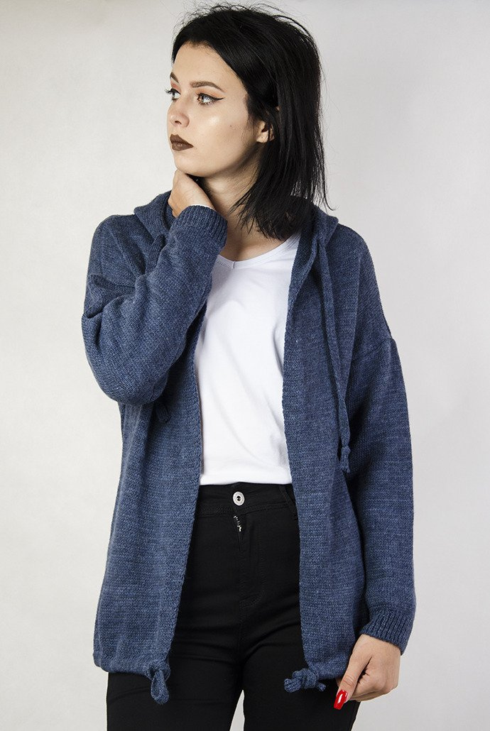 Granatowa narzutka sweterkowa z kapturem.
