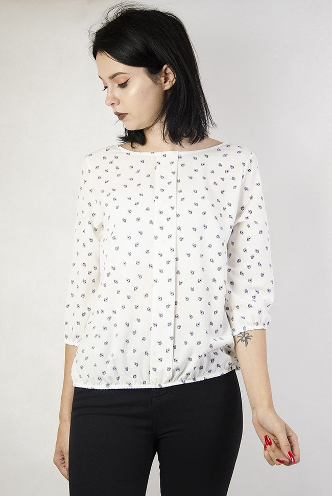 Biała bluzka w szkicowane serduszka.