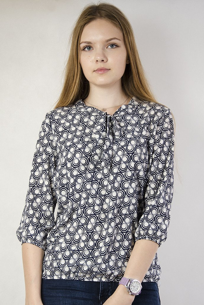 Posiada wiązanie przy dekolcie oraz gumkę na dole i przy rękawie.