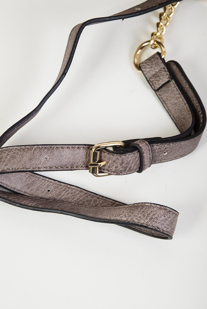 Brązowa, mała torebka z łańcuszkiem połączonym z regulowanym paskiem. W niej schowasz najpotrzebniejsze przedmioty, a przy tym będziesz wyglądać świetnie! W środku jedna główna komora bez przegródek.