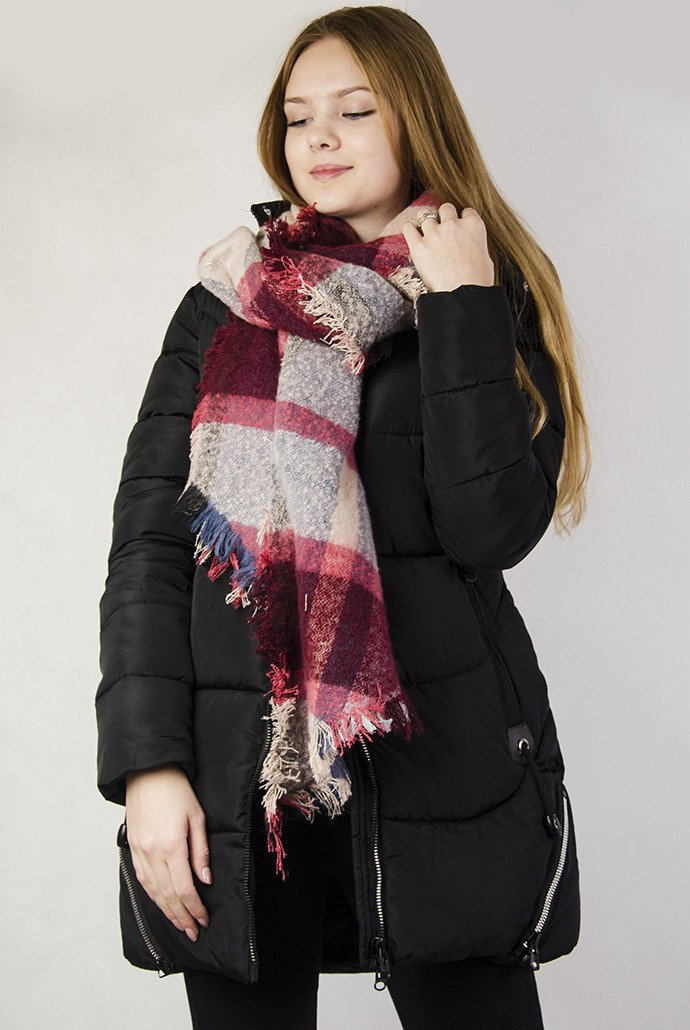 Szal wykonany z przyjemnego w dotyku materiału zapewniającego ciepło w najchłodniejsze dni.