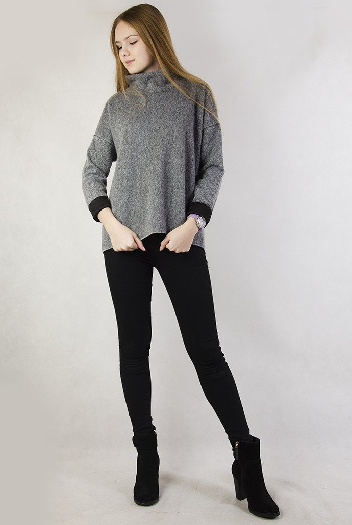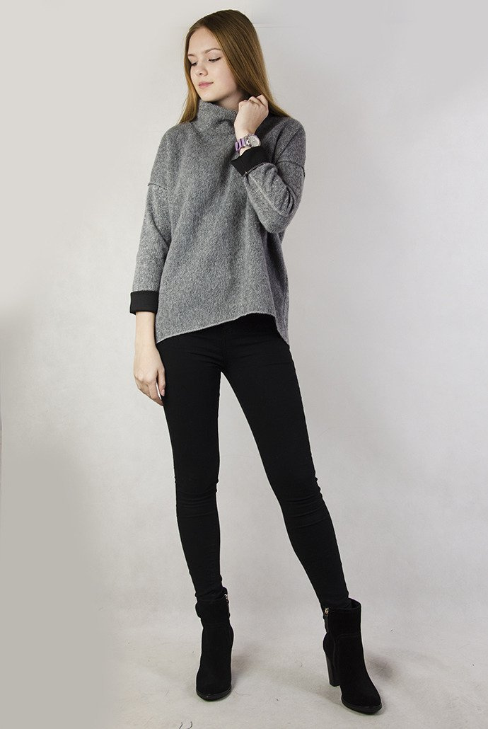 Szary asymetryczny golf (możliwość podwinięcia) przyjemny w dotyku.