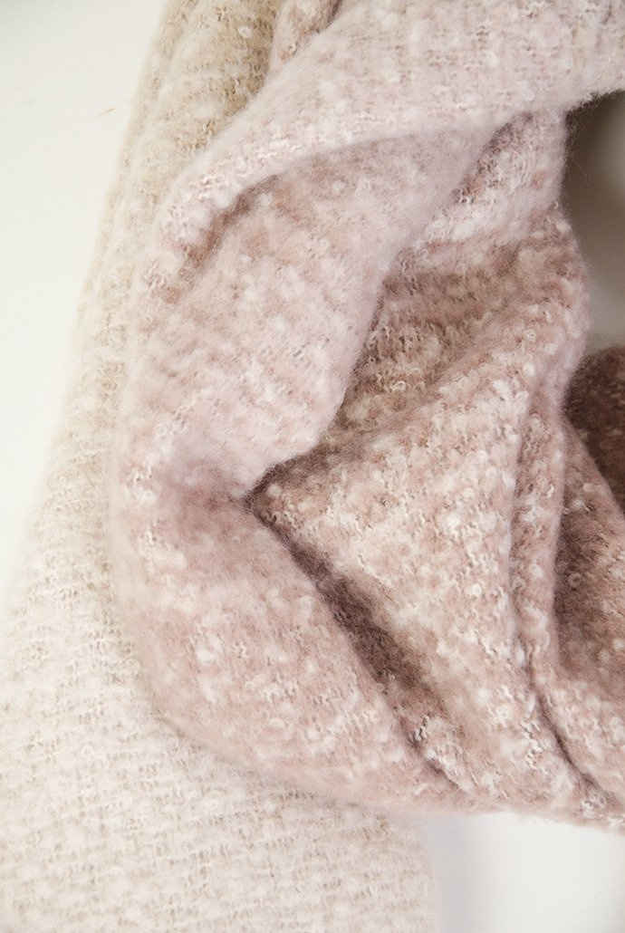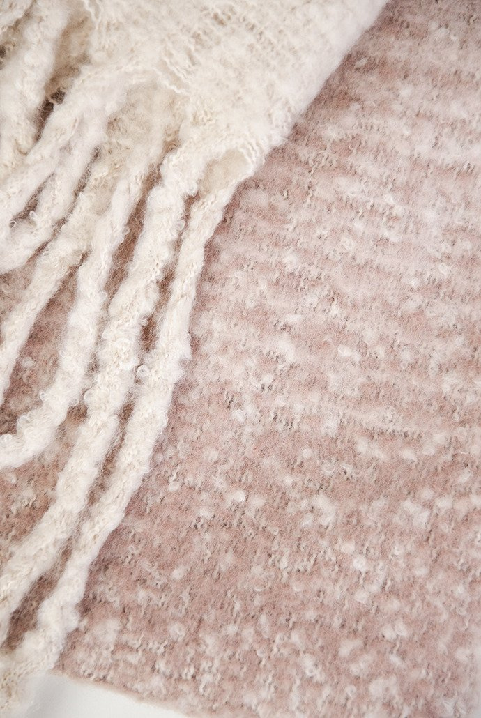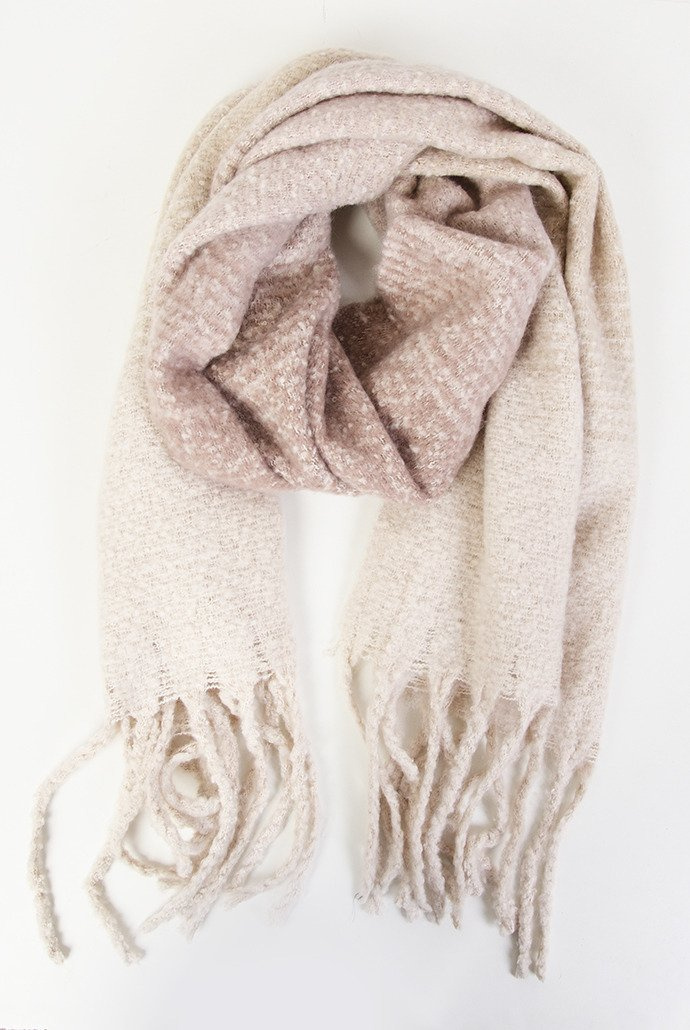 Długi cieniowany szal z frędzlami w odcieniach beżu i różu
