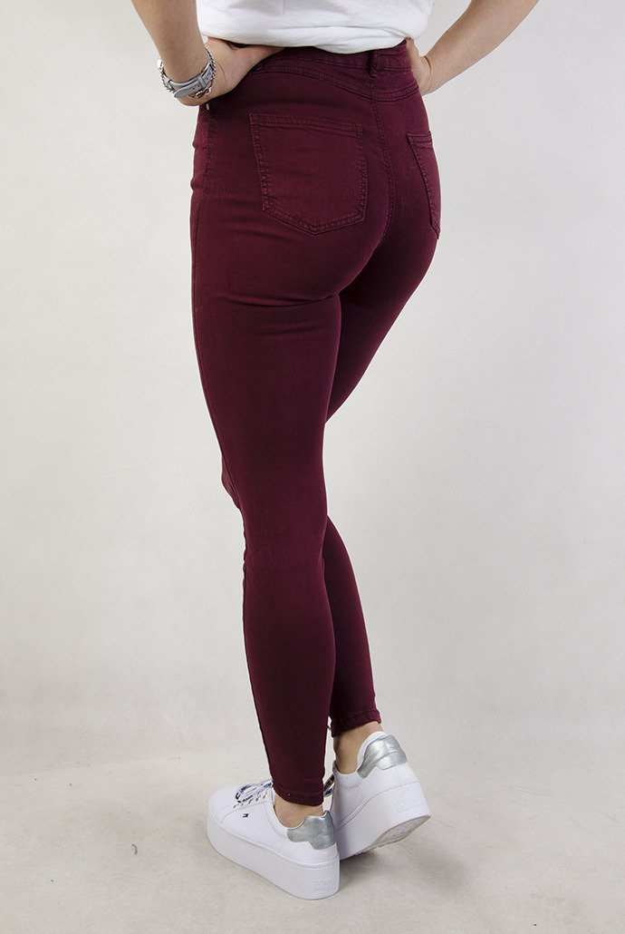 Intensywnie bordowe dopasowane spodnie z wysokim stanem