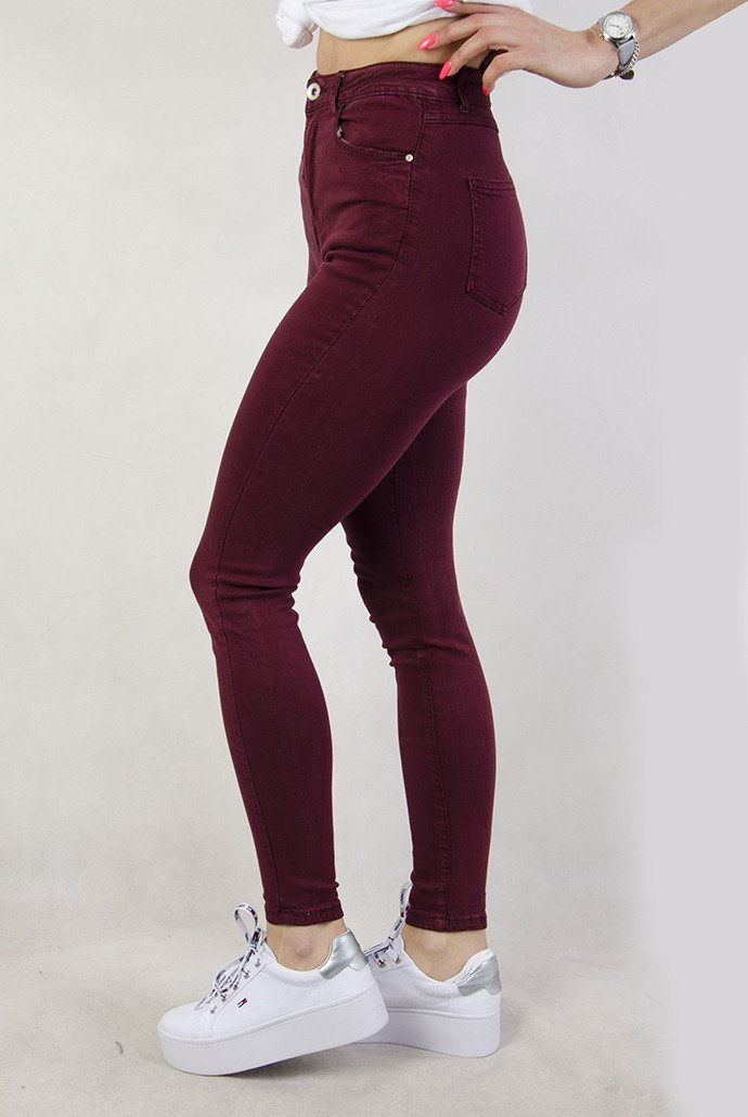 (DUŻE ROZMIARY M-XXXXL) Bordowe spodnie z wysokim stanem