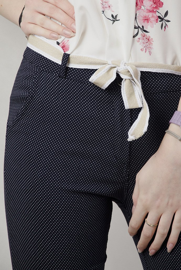 Granatowe spodnie materiałowe w kropki