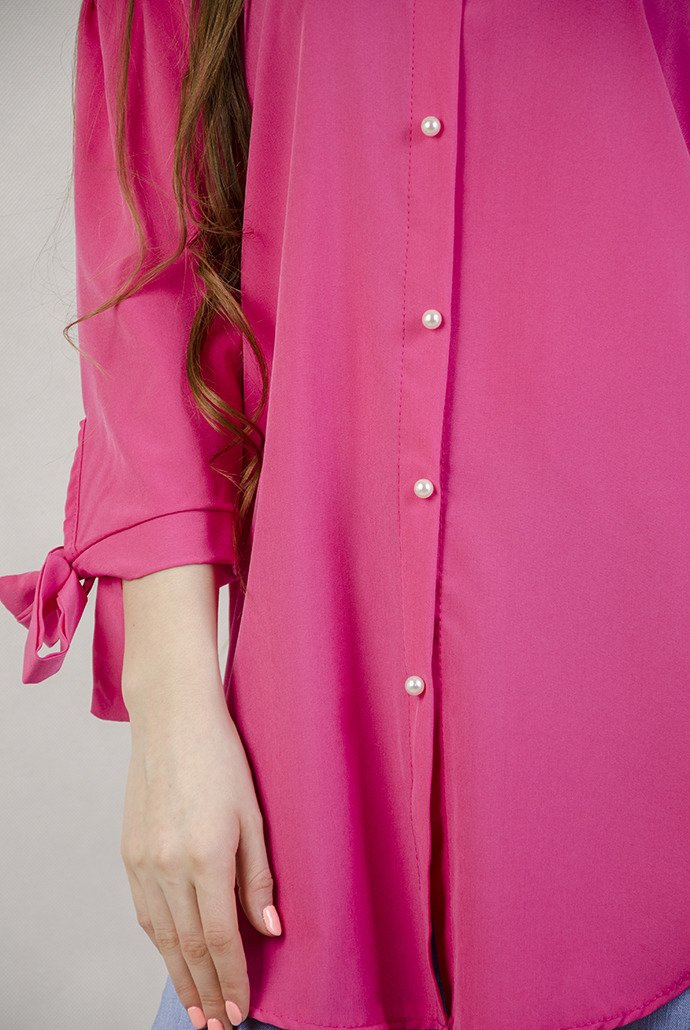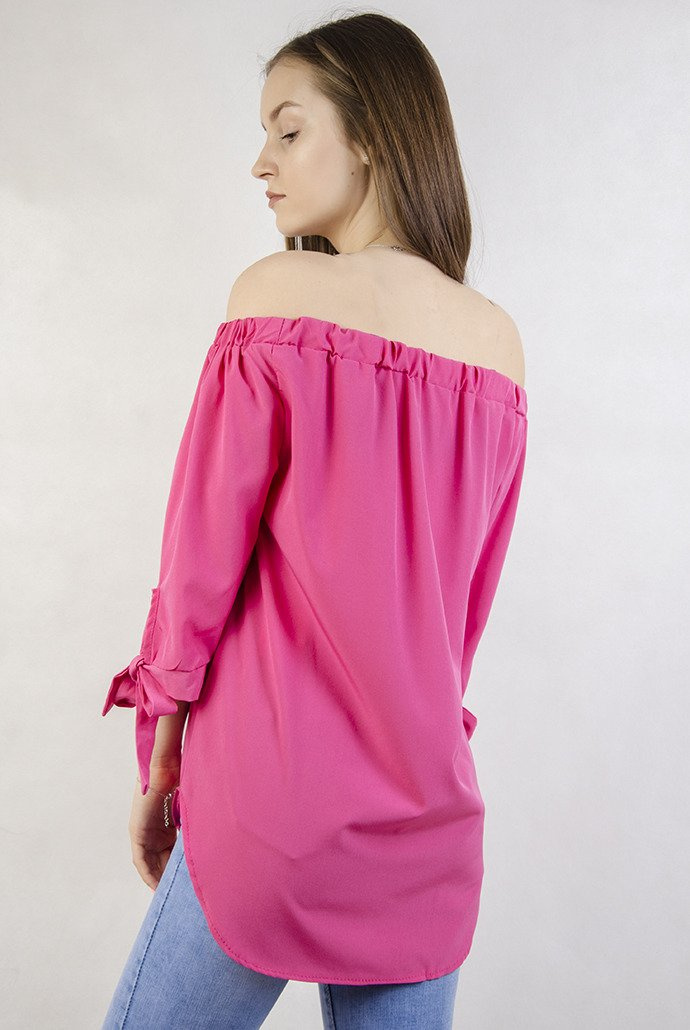 Ciemnorózowa bluzka hiszpanka z koralikami