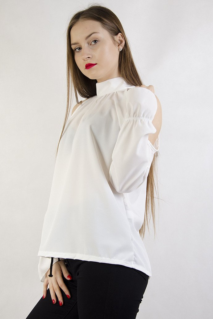 Biała bluzka na długi rękaw z odkrytymi ramionami