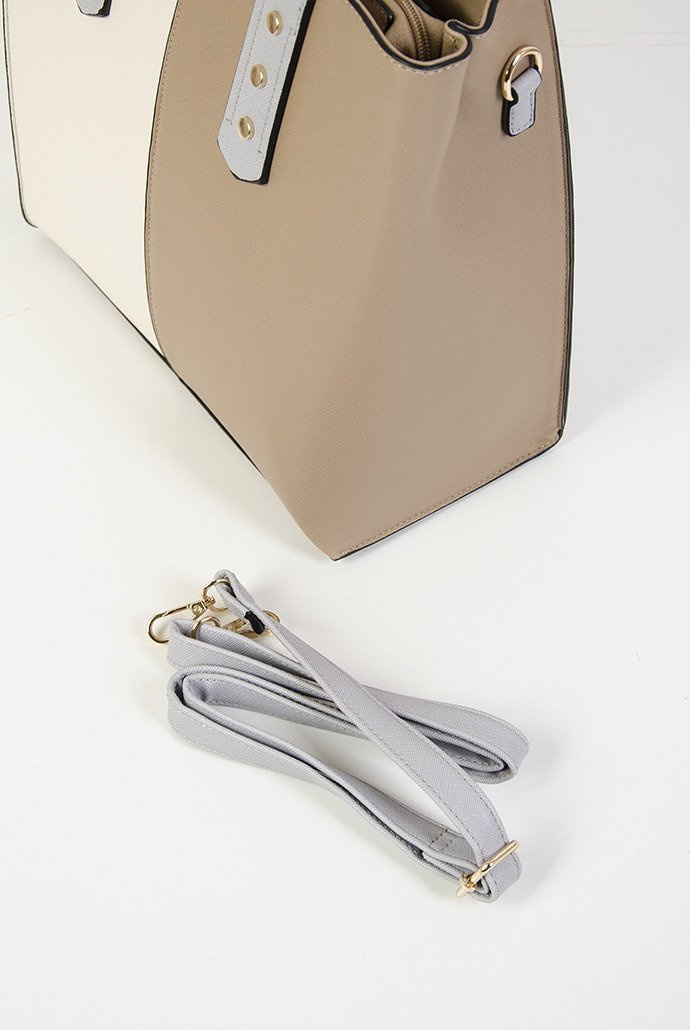 Brązowo kremowa torebka typu shopper z szarą rączką