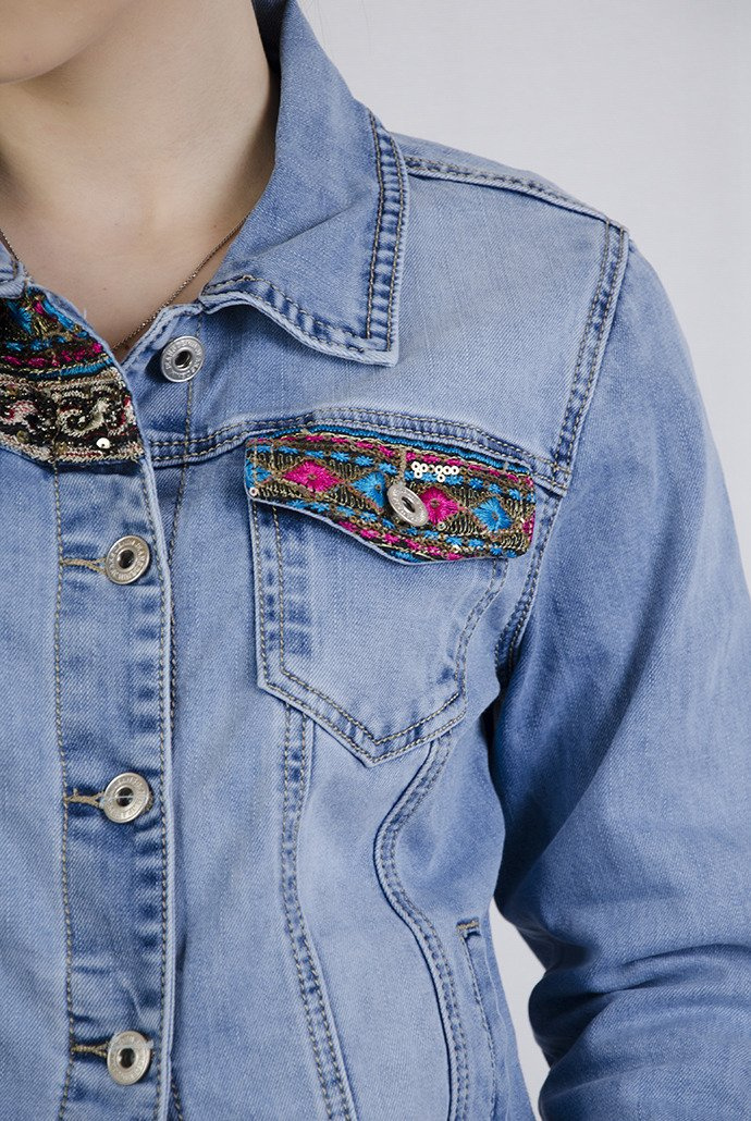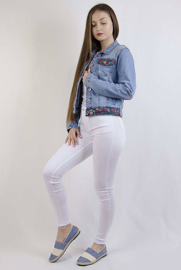 Kurtka jeansowa zdobiona przy kieszeniach i na dole