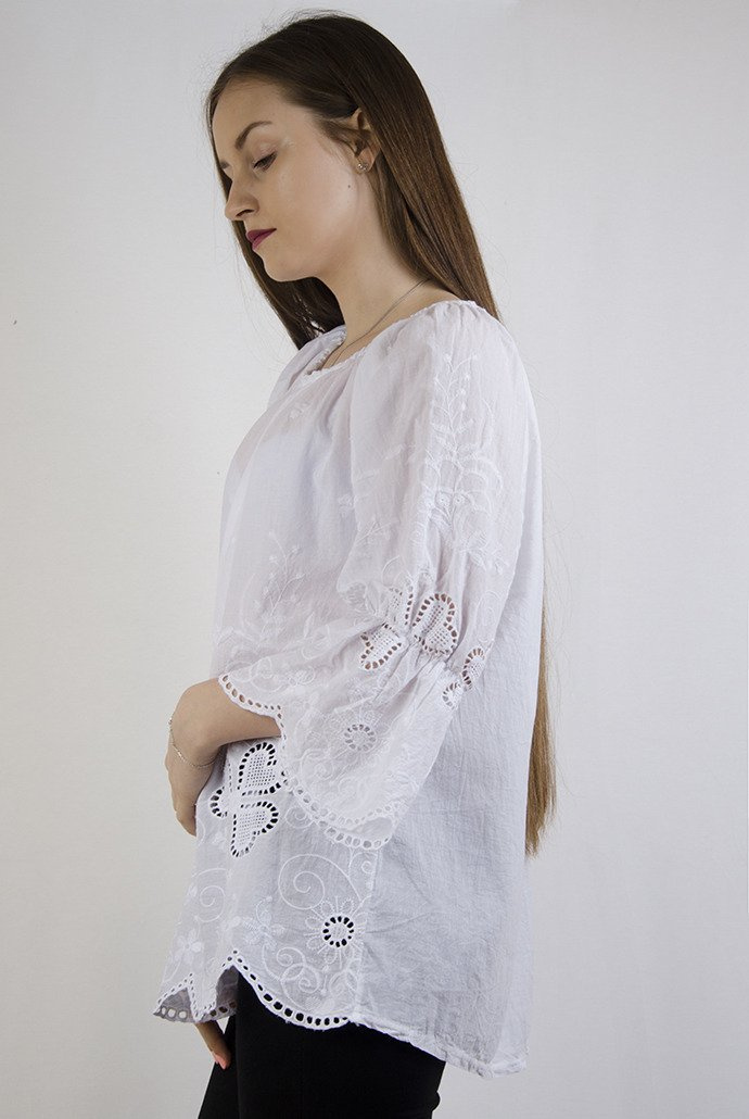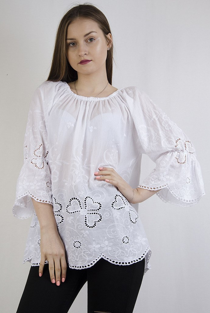 Biała bluzka z rozszerzanymi rękawami